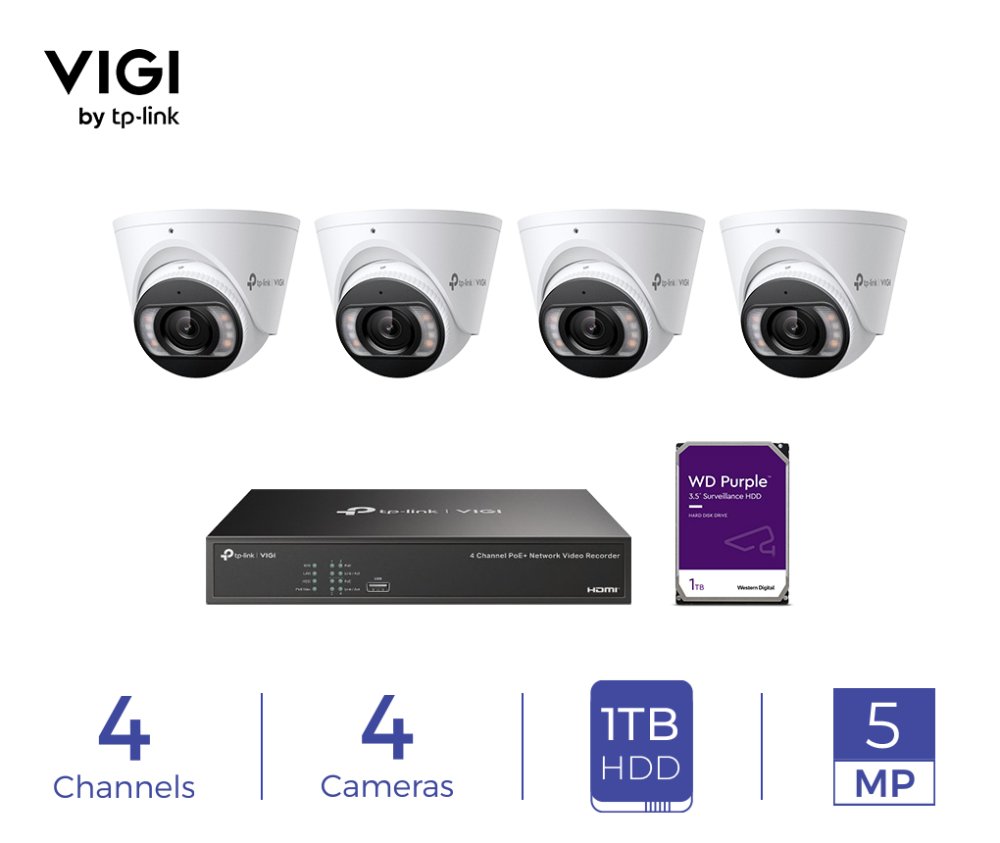 VIGI by TP-Link 4 Channel Recorder, 4 Camera Security Bundle Contents: