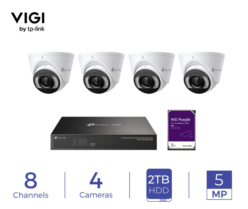 The ICP‑VIGI‑KIT‑003‑A is a comprehensive security system that includes a 4‑channel PoE NVR and compatible VIGI IP cameras. Available at IC Plus